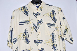 Puritan Men's Designer Casual Shirt, 3XL, Yellow with Blue Palm Leal Design, Short Sleeve, Front Button Pocket, 100% Rayon, new without tags.