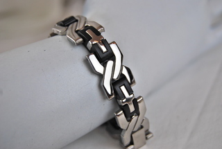 Designer 8 1/2" Silver Stainless in a Black and Silver Cross Link Bracelet Design.